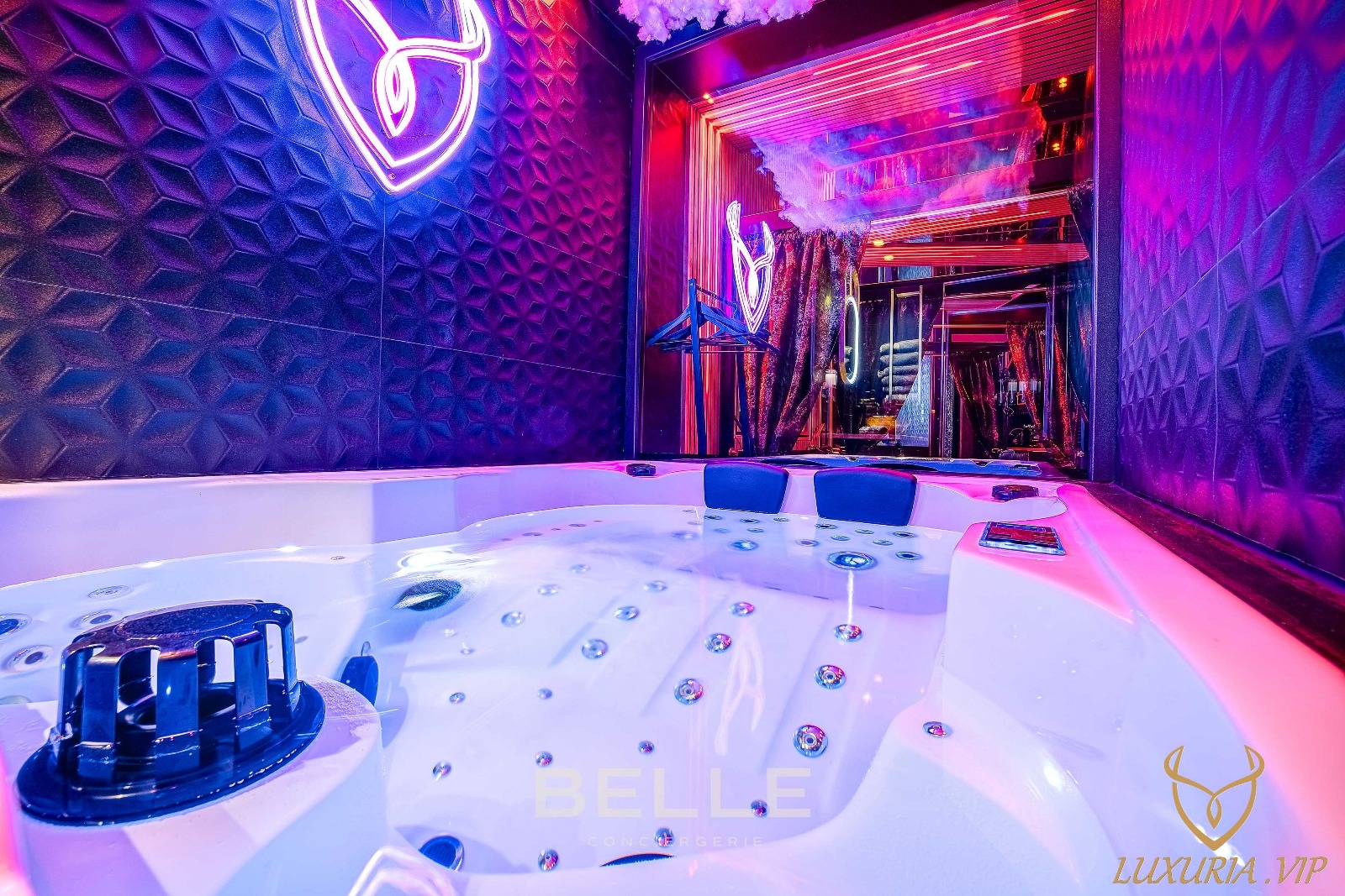Cette suite haut de gamme propose un grand jacuzzi privatif, un hammam, une douche sensorielle, une ambiance lumineuse personnalisable et une décoration élégante pensée pour les couples. Parfait pour célébrer un anniversaire, une surprise romantique, une escapade détente ou une soirée spéciale, Luxuria offre une expérience unique alliant intimité, confort et prestations premium.